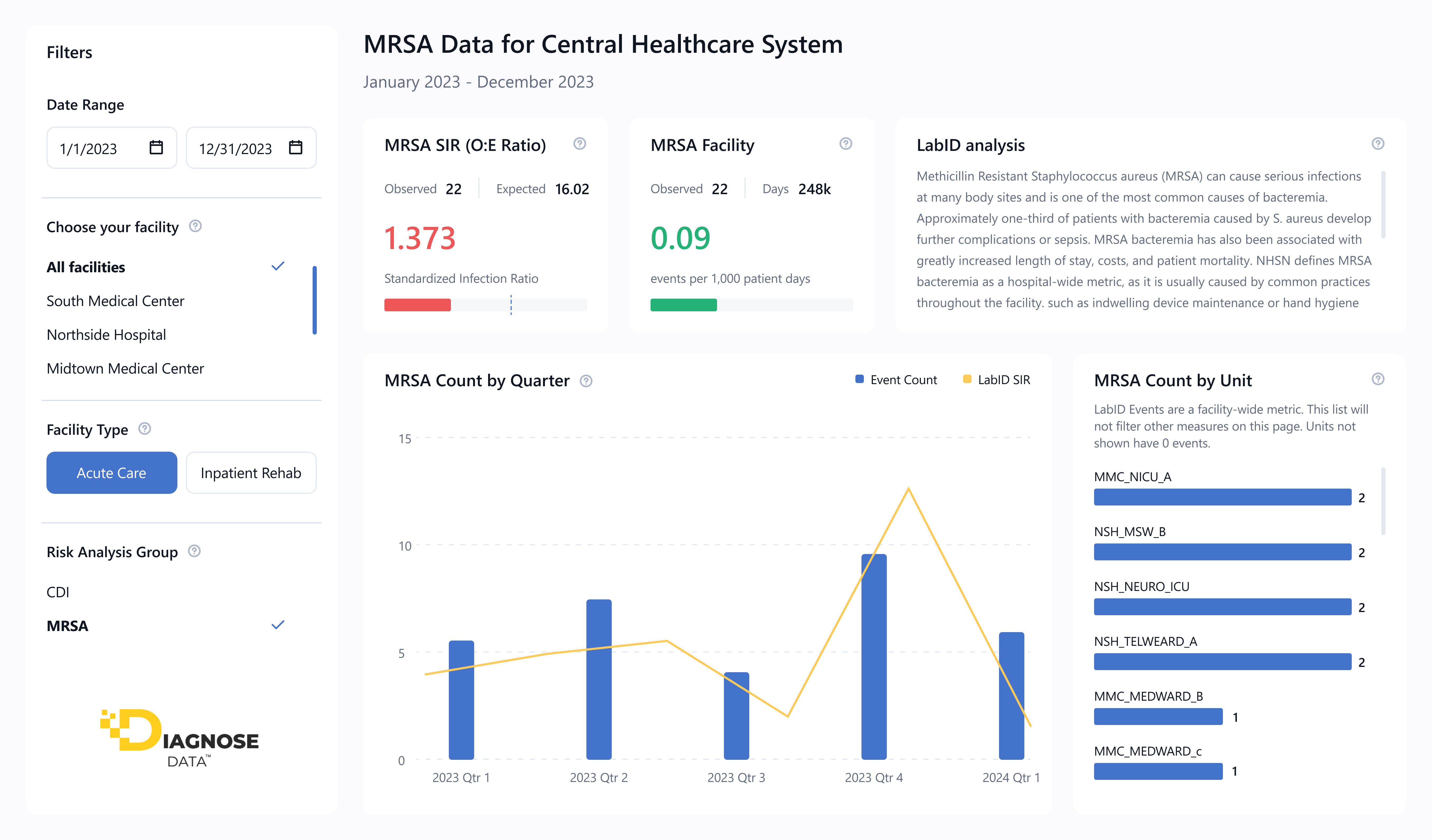 Our company specializes in providing healthcare data visualization and analytics solutions. We focus on helping hospitals and healthcare facilities reduce hospital-acquired infections (HAIs) by leveraging advanced data analytics to identify risk factors, track infection rates, and implement effective prevention strategies.